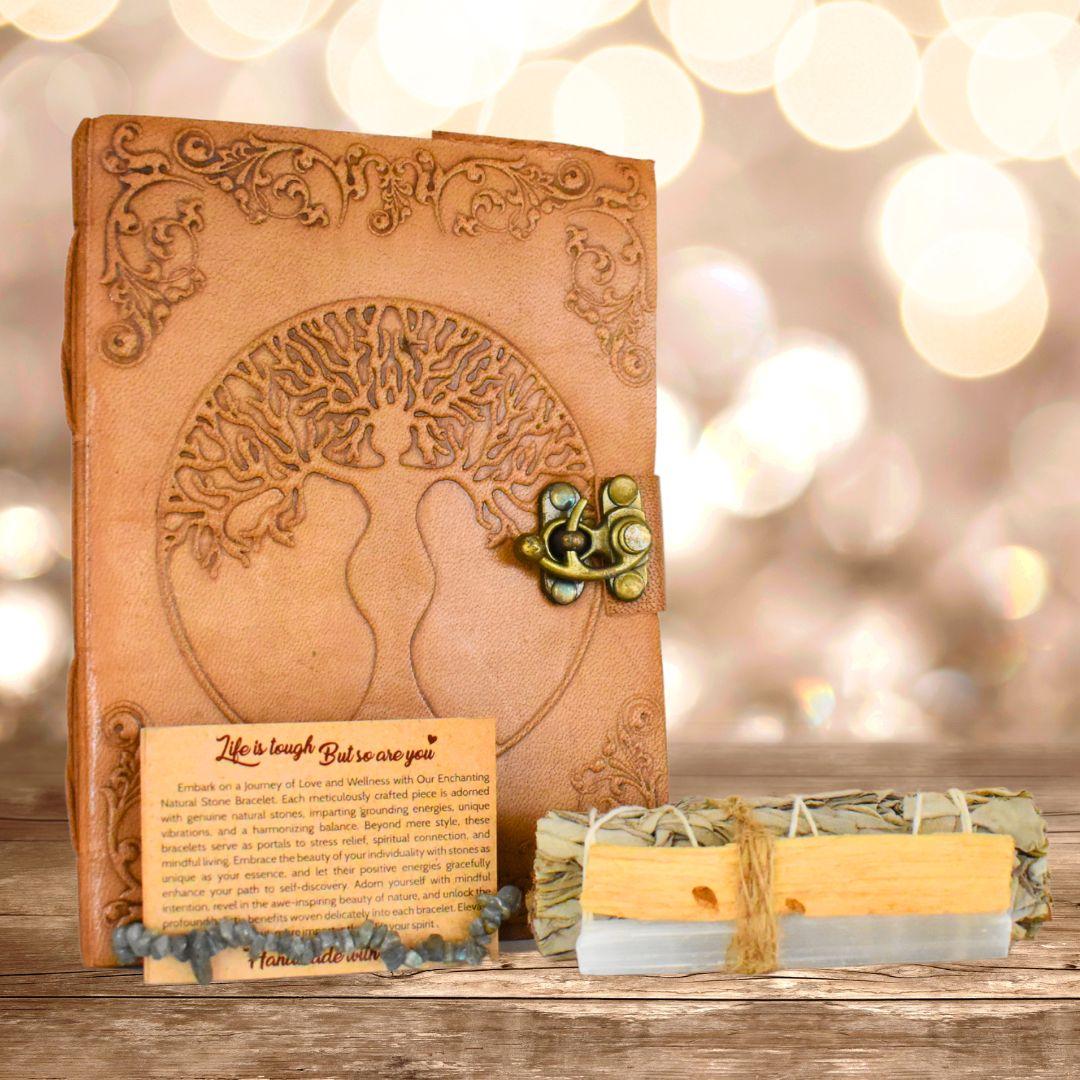 Goddess Gift Set - Leather Journal, White Sage Smudge, Palo Santo, Selenite & Crystal Bracelet